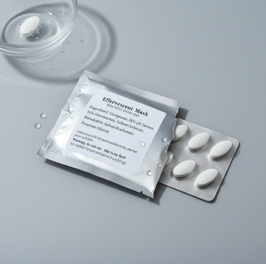 Individually sealed effervescent mask tablets